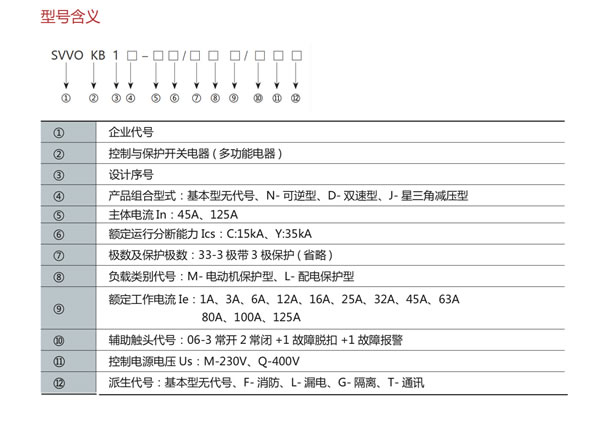 “控制與保護開關電器”是低壓電器中的新型產品,其產品類別代號為“GPS”( Control and Protective Switching Devices )。 SVVOKB1系列控制與保護開關電器是在單一結構形式的產品上實現集成化的、內部協調配合的控制與保護功能,能夠替代斷路器(熔斷器)、接觸器、起動器、隔離器、熱繼電器、過載(或過流、斷相)保護繼電器、電機綜合保護器、智能漏電繼電器等多種傳統的分離元器件,具有遠距離自動控制與就地人力控制兼有的方式進行控制操作的功能,具有協調配合的時間-電流保護特性,具有控制與保護自配合、短路后連續運行,具有分斷能力高,飛弧距離小、壽命長,具有保護整定電流均可調的特性,操作方便、配套附件模塊多樣齊全等優點,可以實現對電動機負載、配電負載的控制和保護。
