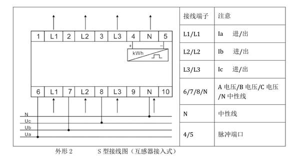 該電能表有光電耦合式電能脈沖測(cè)試輸出端口,位于接線端鈕盒上,將側(cè)試設(shè)備的+5VDC接到正極端子上,信號(hào)線 S 接到負(fù)極端子上即可。