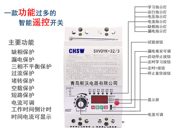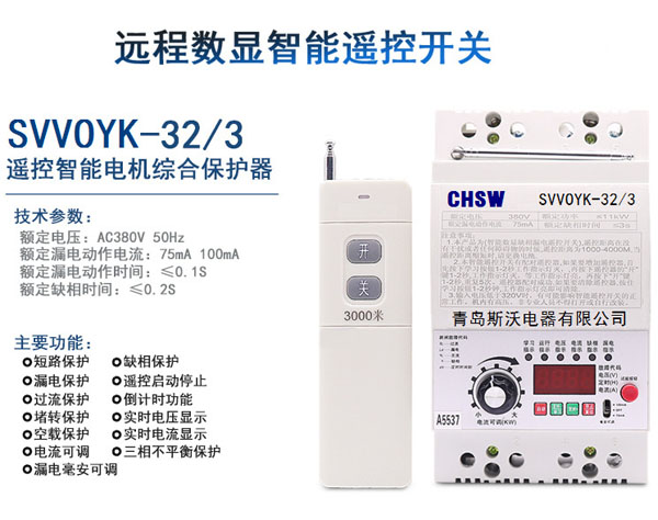水泵遠程遙控器11KW三相遙控開關數顯 缺相漏電保護